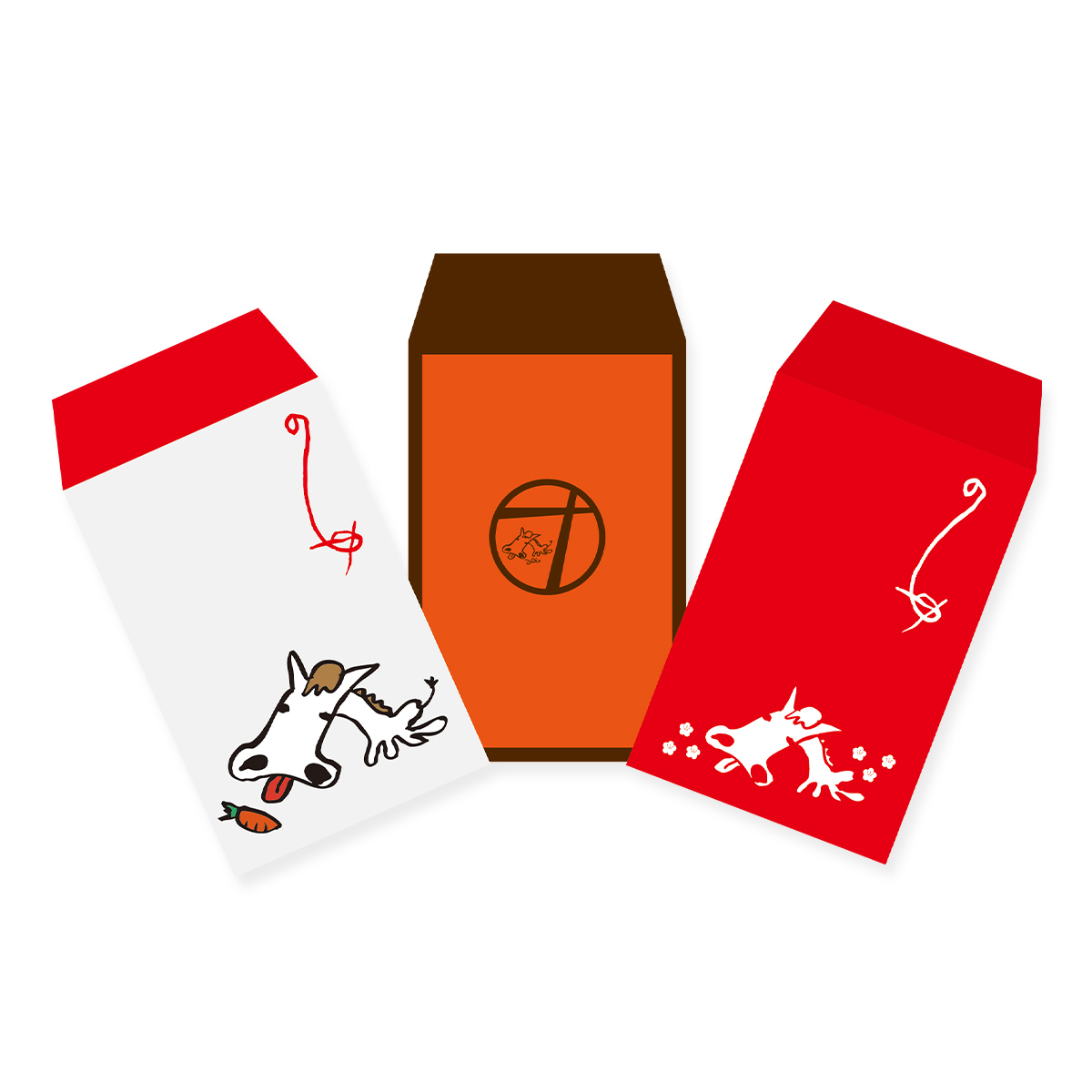 OT描きおろし午に熨斗バージョンを紅白2種と、オレンジバージョン。
